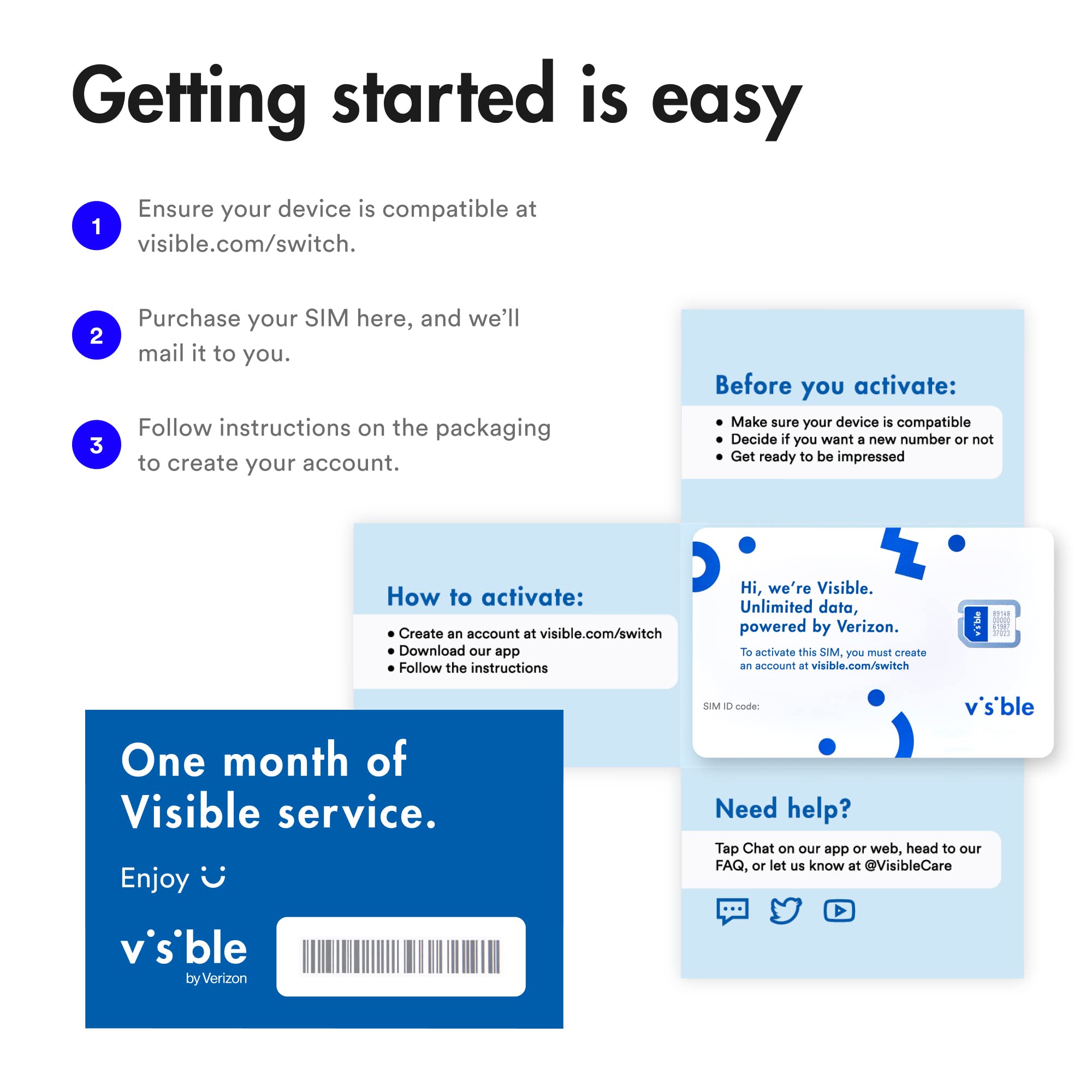 Amazon Com Visible One Month Prepaid Service Sim Card Visible Unlimited Data Plan Cell Phones Accessories
